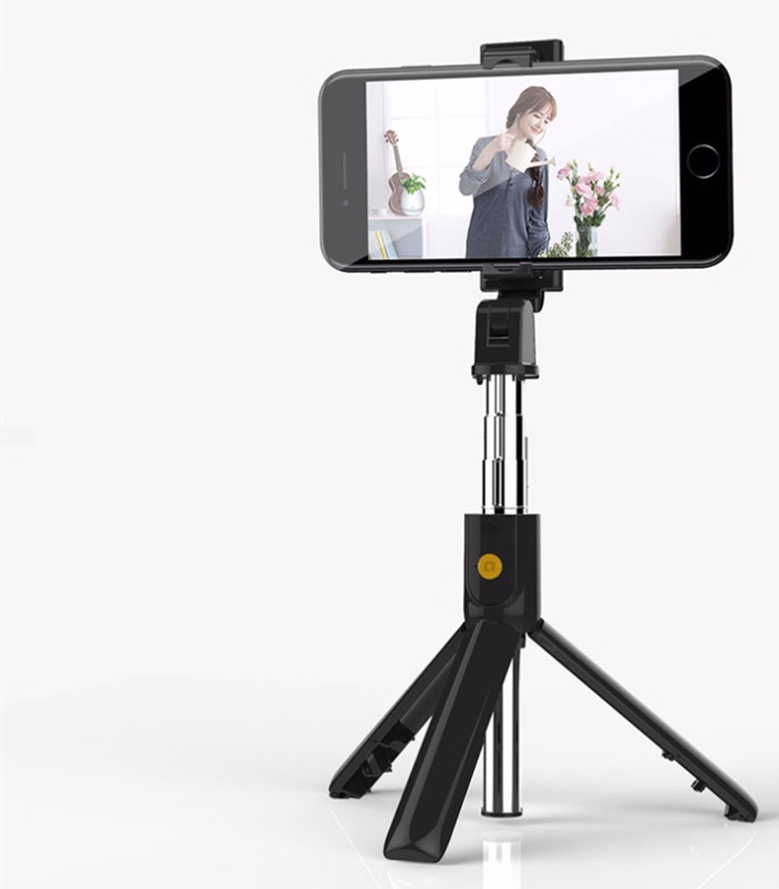 1. Todo en uno de diseño: El teléfono móvil selfie stick + Trípode + retrovisor Bluetooth + mando a distancia.
